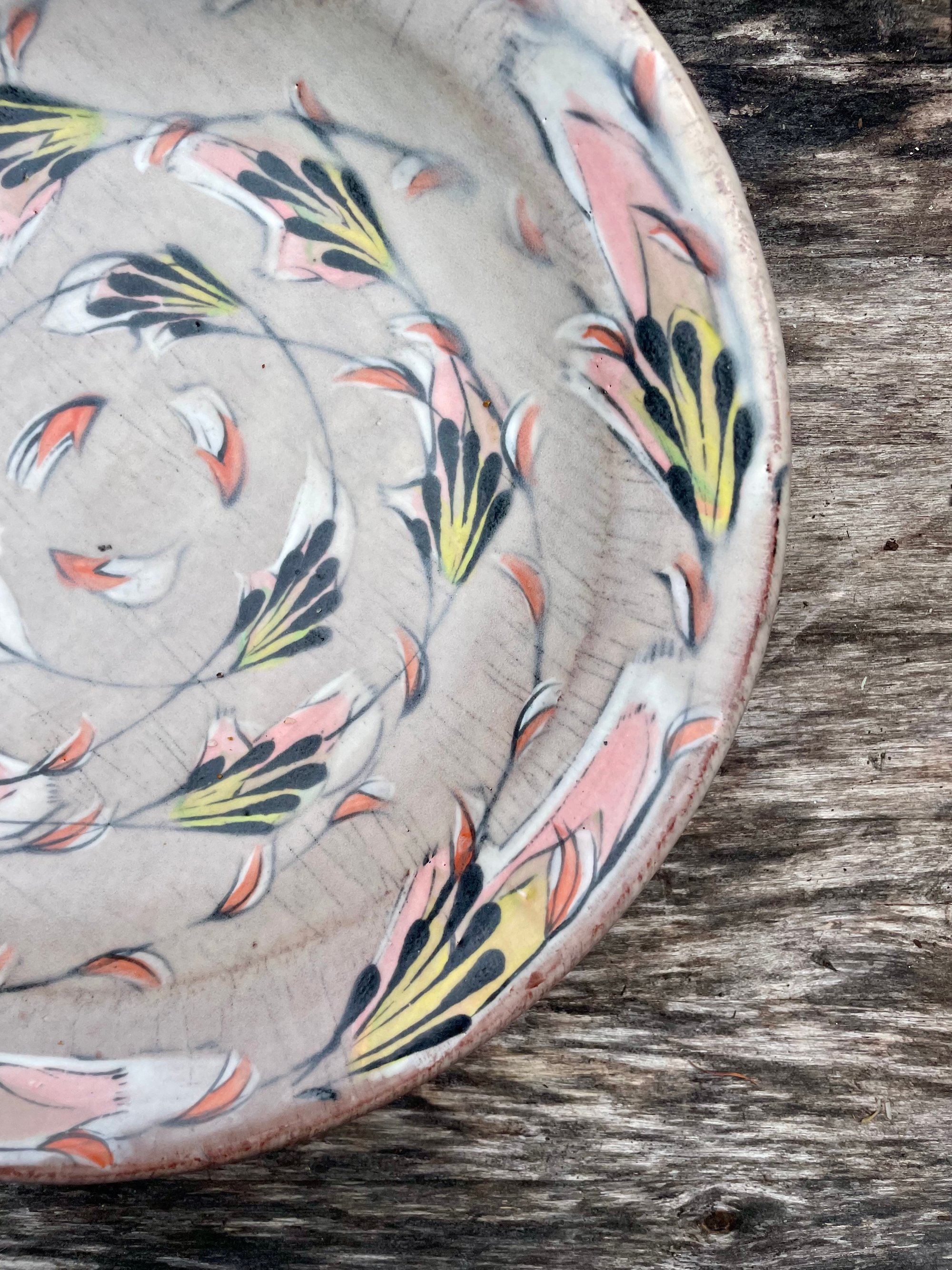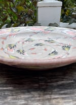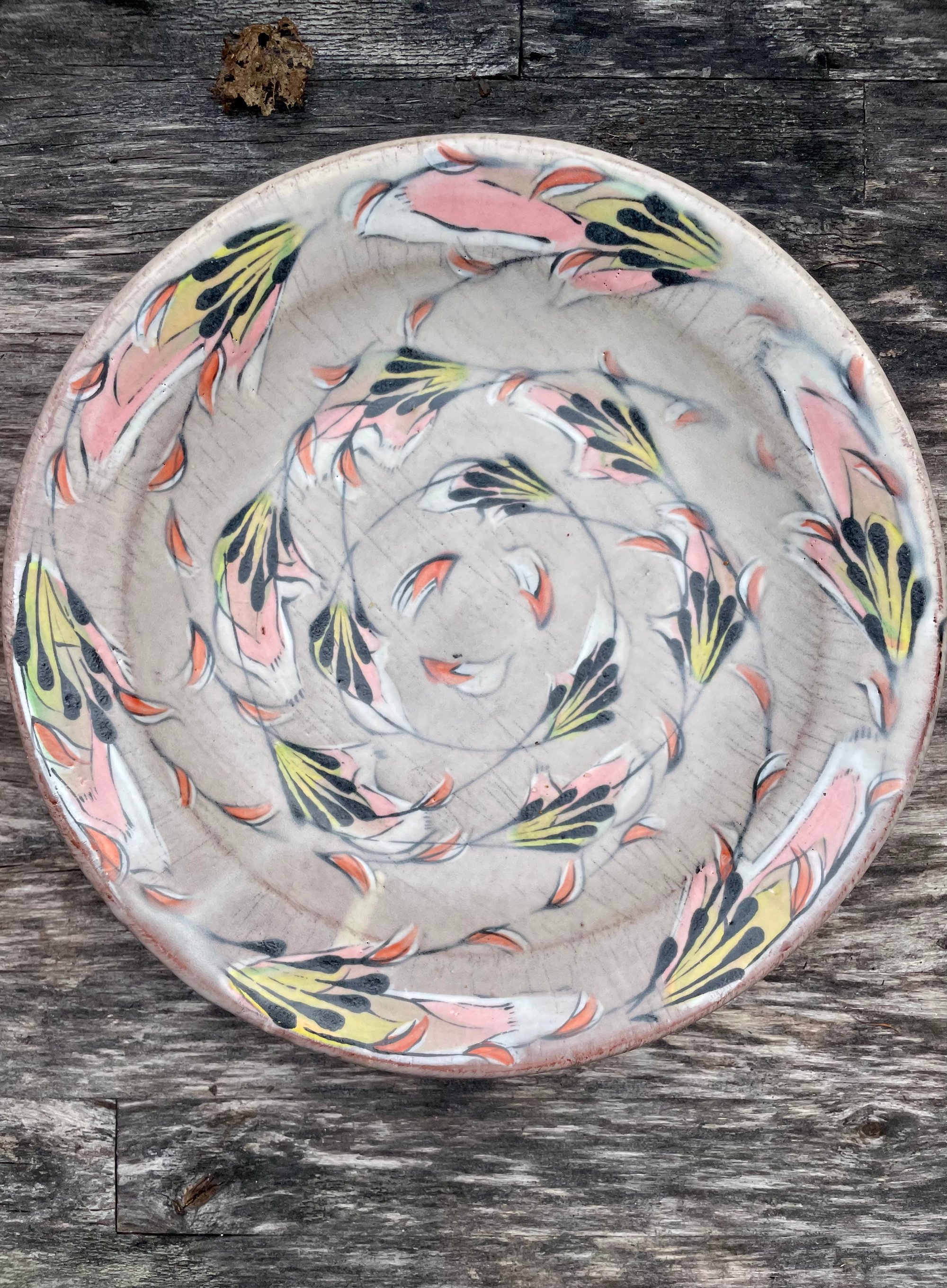 This dinner plate is ready for service and is one of my best. It is slightly deeper than your average dinner plate, good for pastas, stews, or anything that benefits from a little depth. Dimensions: