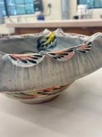 This drop rim is a classic form and a new one for me. Food, microwave, and dishwasher safe, this sturdy piece is fit for service.