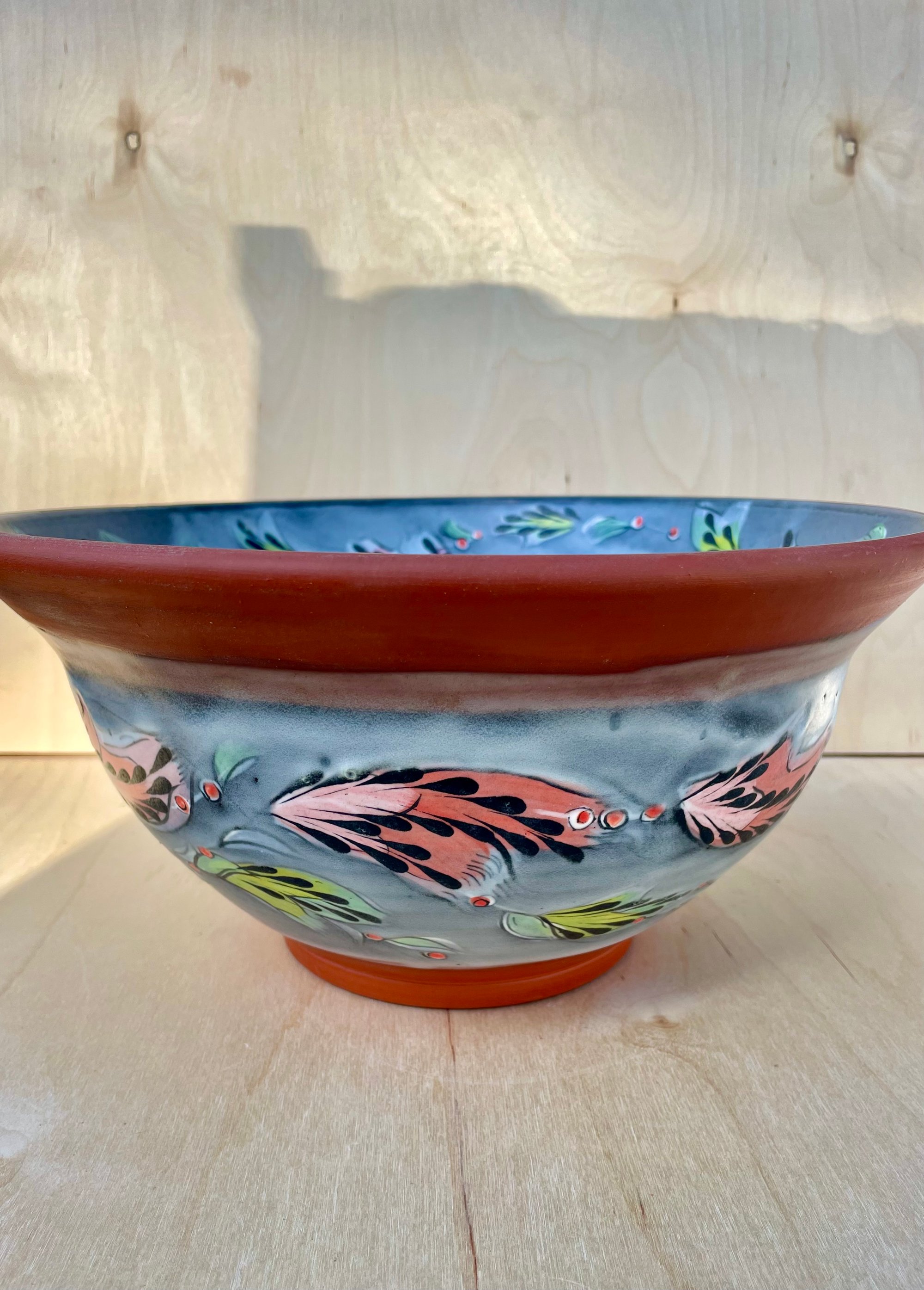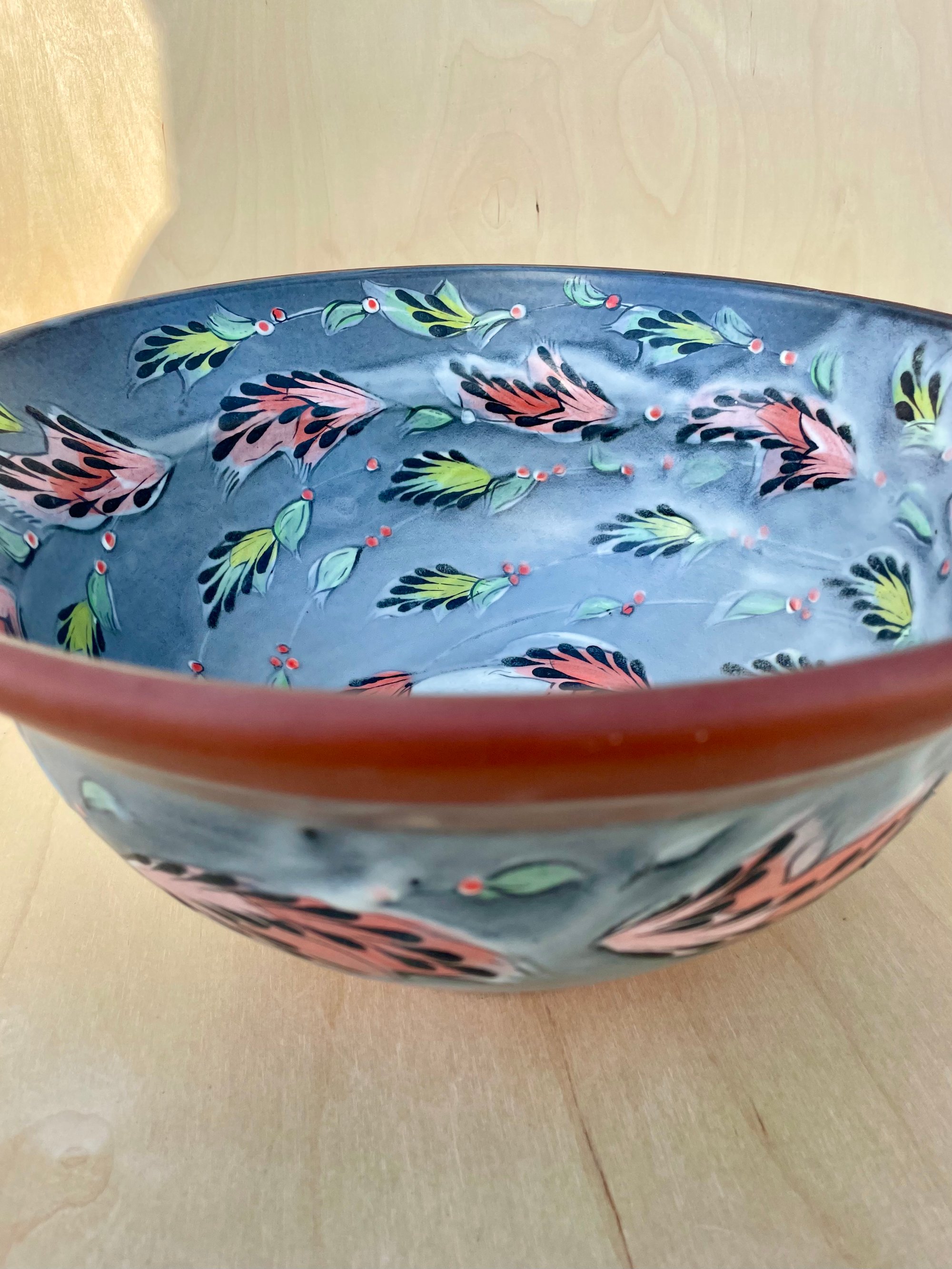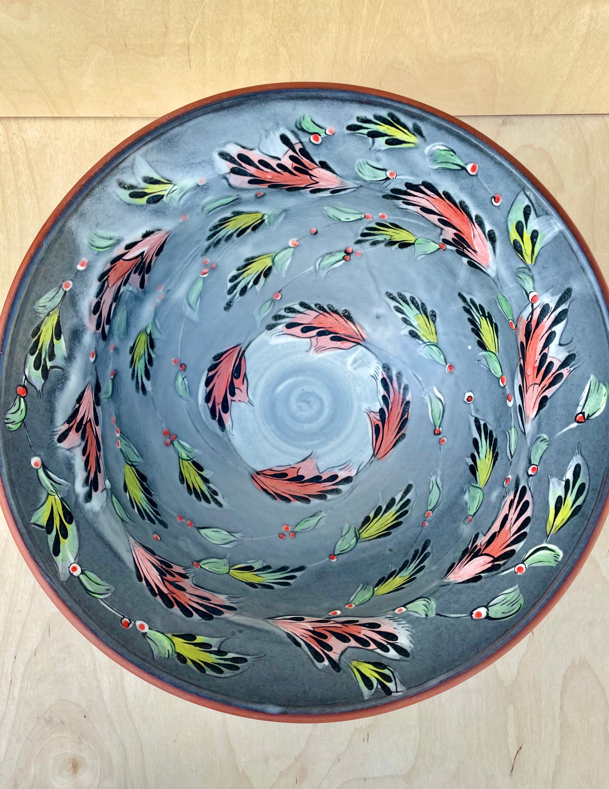 This bowl is an absolute unit. It is generous and I am very proud of it. This bowl would work as a centerpiece, on the counter with fruit, or for serving a large salad. It is deep and wide.