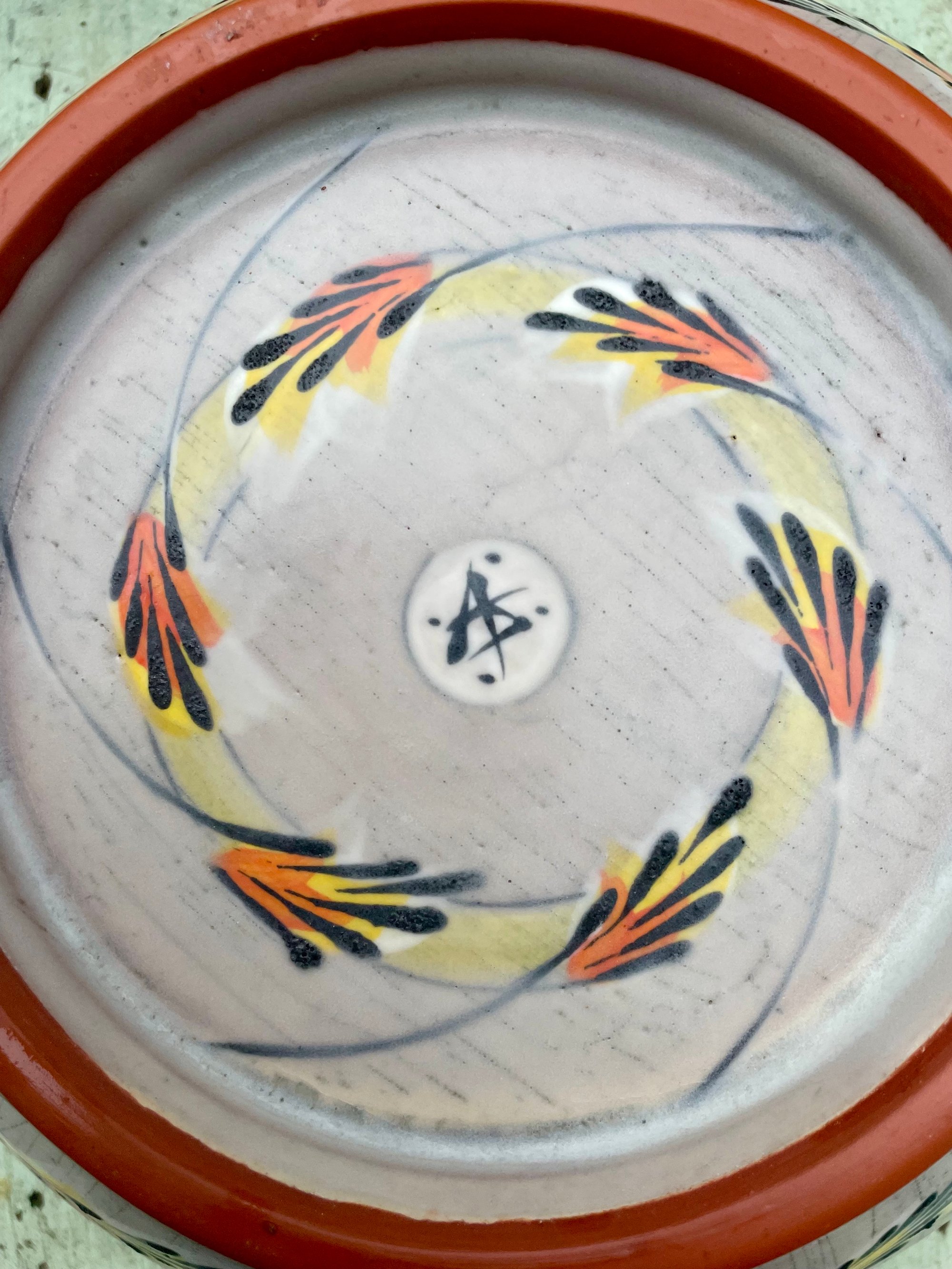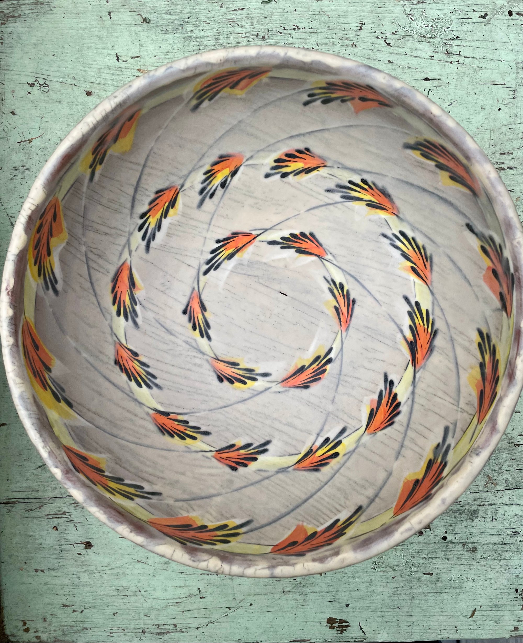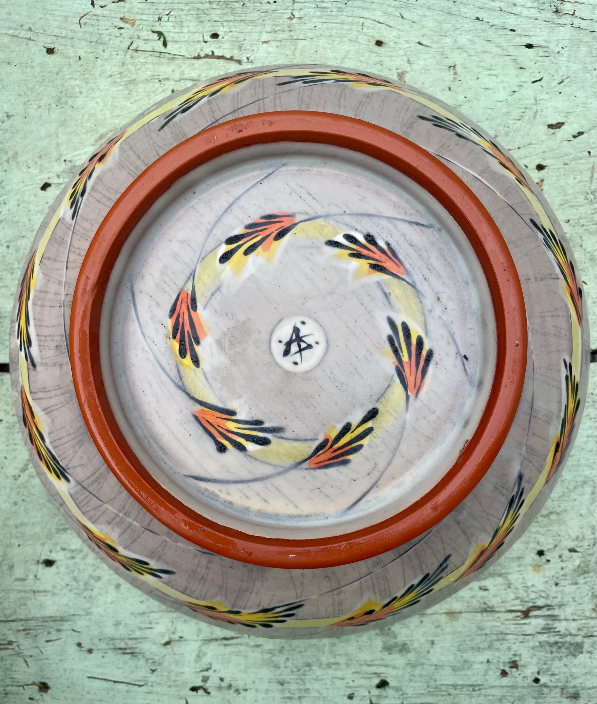 This is a generous serving bowl, centerpiece, or fruit bowl. It is food, microwave, and dishwasher safe. Hand made and decorated, it is truly one of a kind.