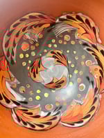 This classic shape is perfect for all soups but can be used for just about anything. Handmade and decorated, this piece is glazed to be food, microwave, and dishwasher safe. A combination of glaze, underglaze, slip, and terra sig are used to create this surface, and all brushwork is completed painstakingly by hand. Treat yourself.