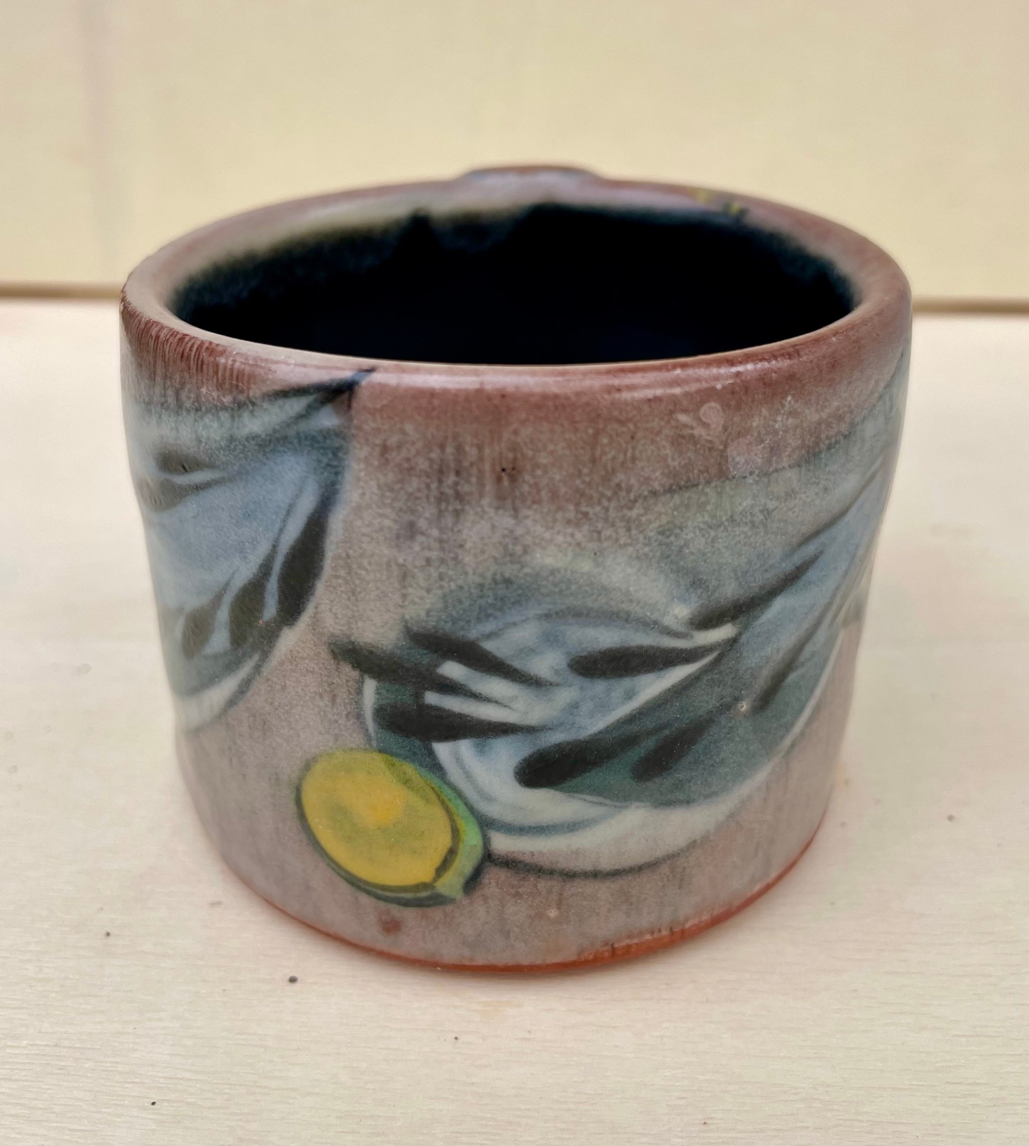 This is a nice mug that is great for hot beverages. A little but of wind, a little sun, this piece is handmade and decorated in CT.