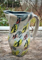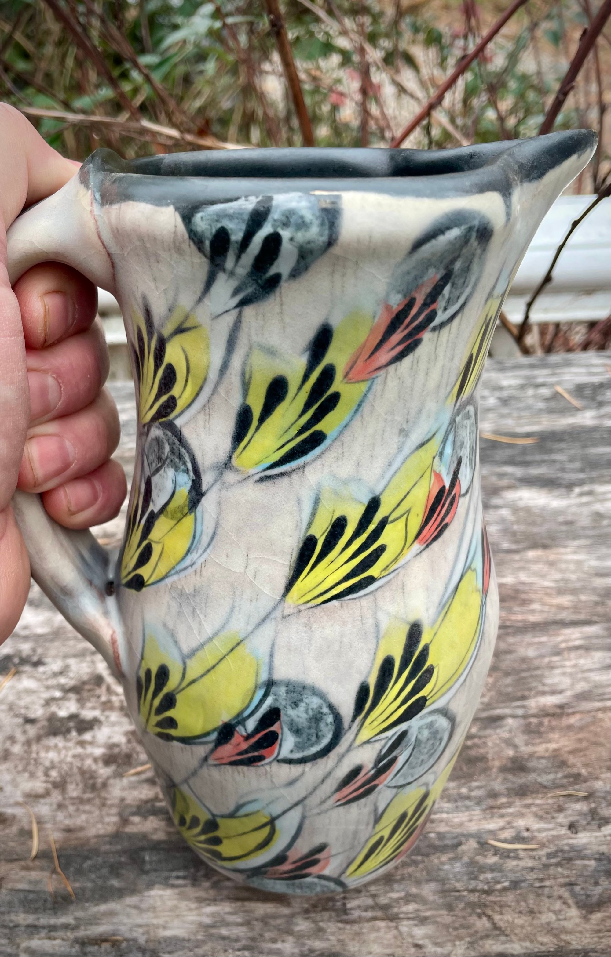 This pitcher is nicely sized for a couple of cocktails, water on the table, or to display flowers. Dimensions: